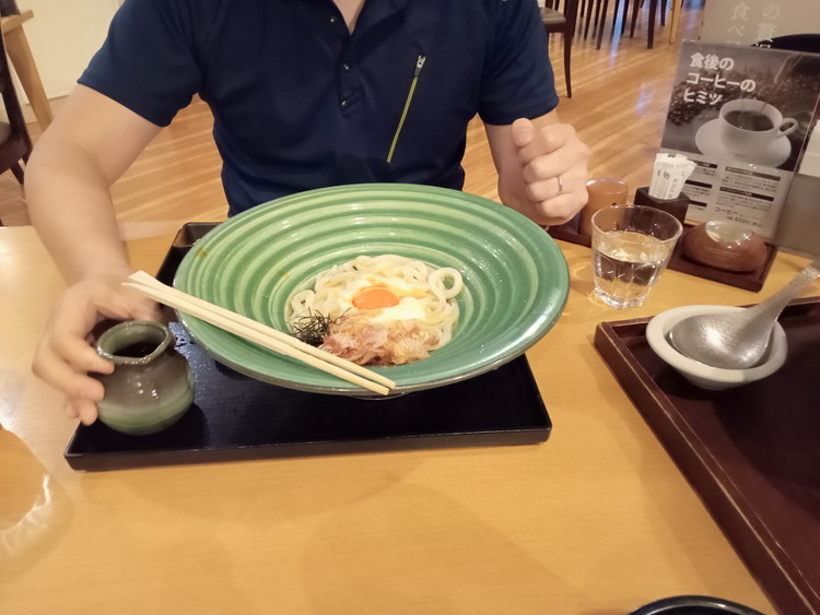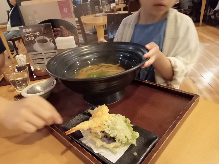 娘が頼んだ「天ぷらのおうどん」は鉢が娘の顔より大きかった。