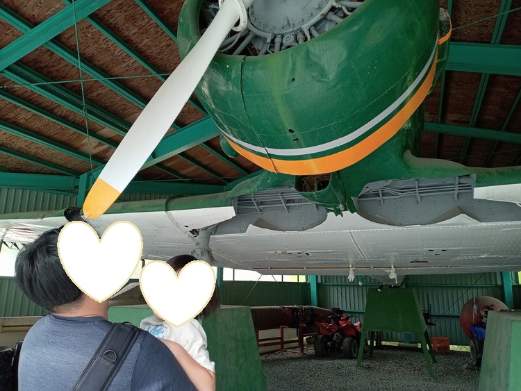 近くの大きな倉庫の扉が開いていて、中に入るとゼロ戦があった。