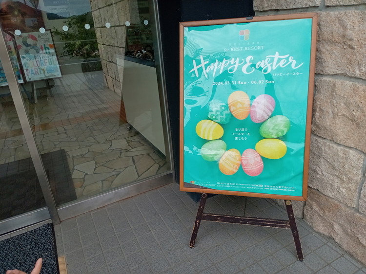 入口近くにはイースターの卵探しのイベントを知らせるポスターがあって、娘が反応した。